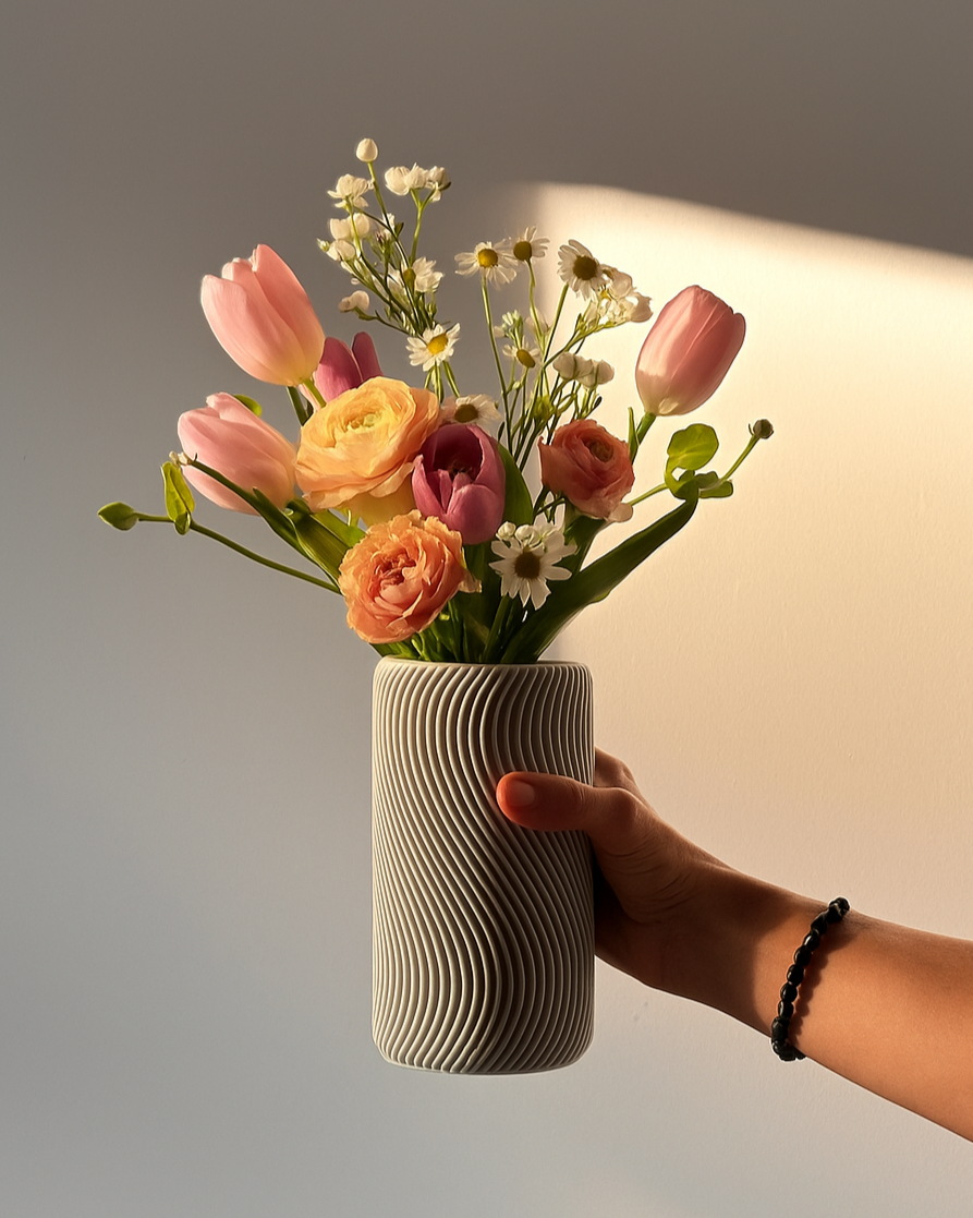 Dank spezieller Versiegelung eignet sich die Vase für Trocken- und Frischblumen.